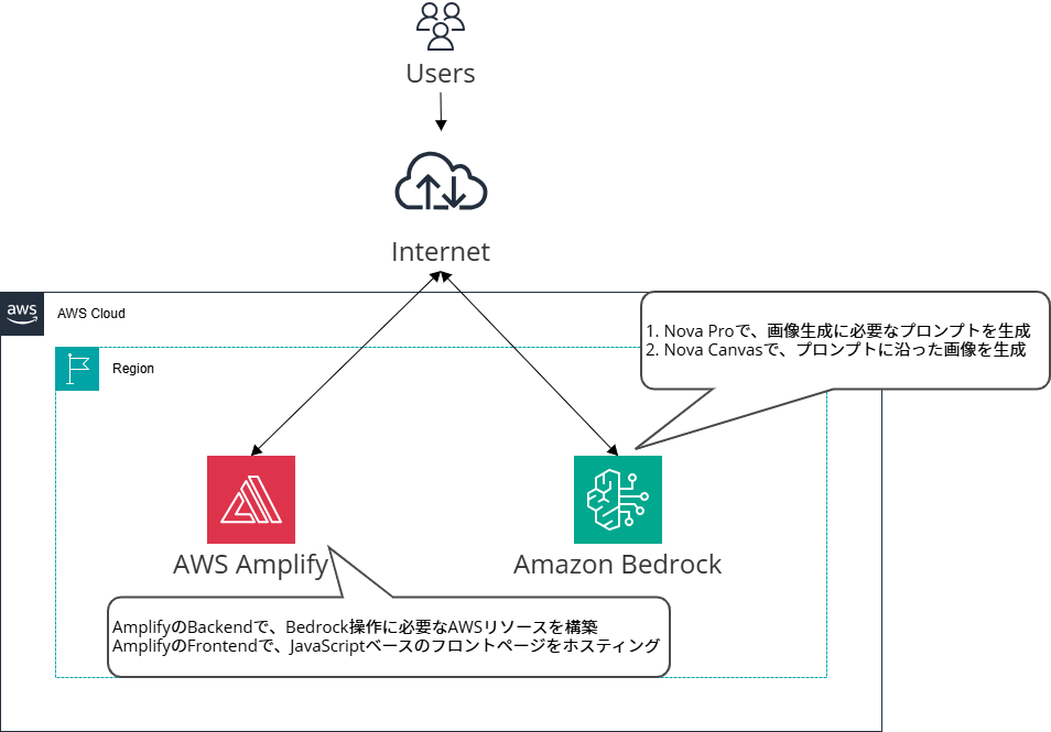 今年は「赤と緑」に縛りを設けて何か、動作するものを作ってみようということで、「赤:Amplify」と「緑:Bedrock」に焦点を充ててクリスマスらしいものを作ってみました!!!