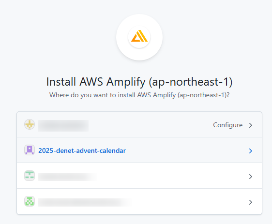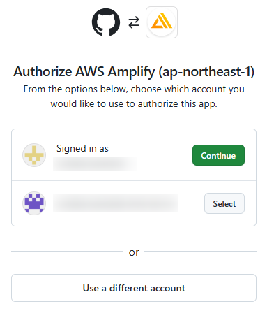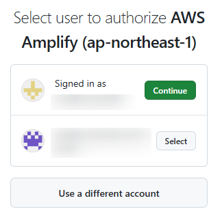どのGitHubアカウントか?と再度選択を求められたので、適切なアカウントをクリックしました。