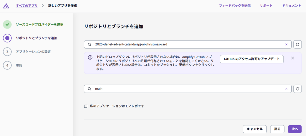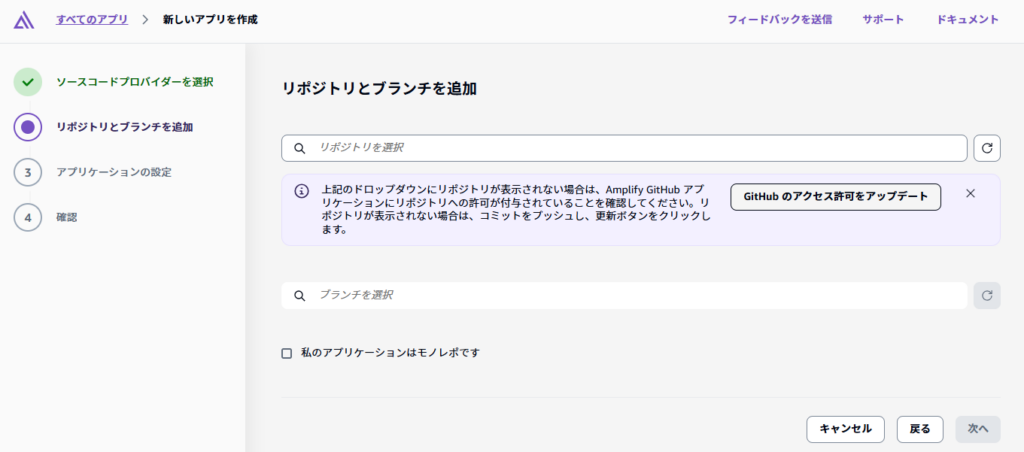 さらに設定ができるようだったので「GitHubのアクセス許可をアップデート」をクリックしました。