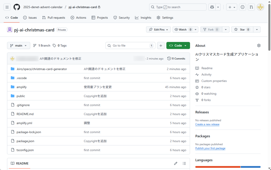 タイトルにもあるとおり、AIでクリスマスカードを生成するアプリケーションのほとんどをKiroによって作ってもらいました。