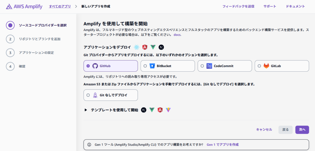 Amplifyはアプリケーションを新たに作成する段階から、Gitの利用がかなり推奨されています。