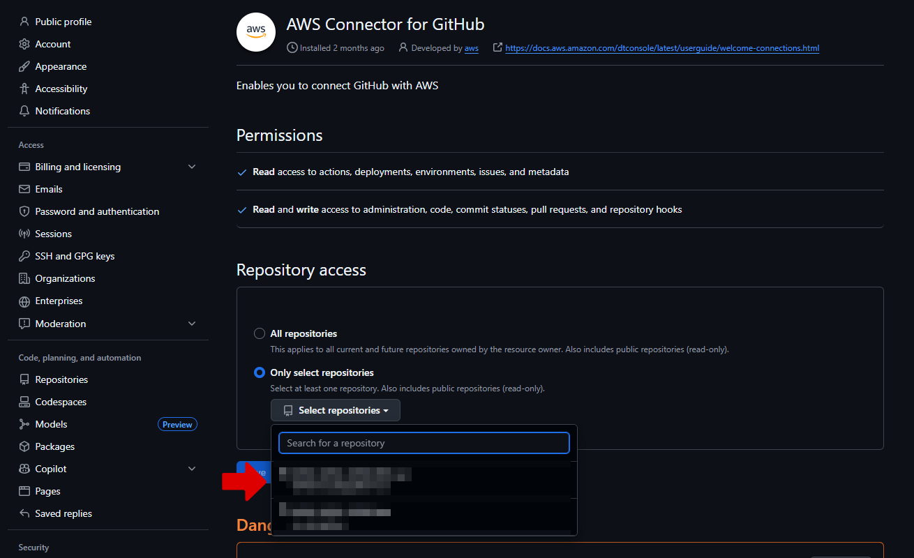 「新しいアプリをインストールする」をクリックし対象となるGitHubリポジトリを選択します。