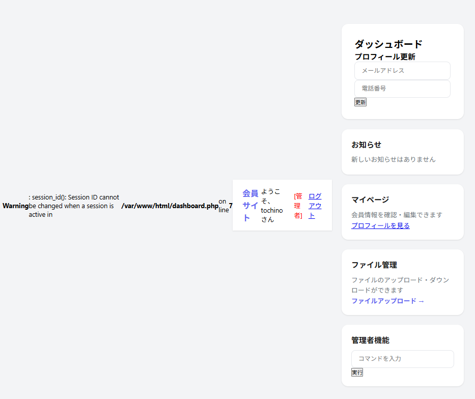見た目はモダンな作りで、ただし一般的によくみられる脆弱性を搭載した状態で、簡単なログイン機能とWebフォーム機能を搭載した会員サイトを生成してください。