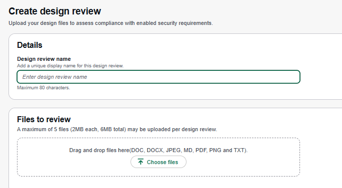 といっても、レビューに任意の名前を付けて、対応する拡張子の設計書をアップロードするだけで完了です。