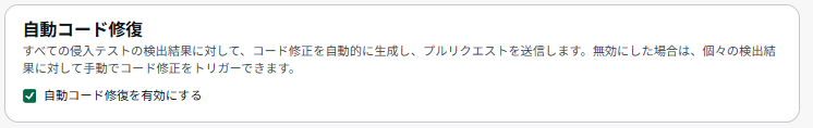 自動コード修復にチェックを入れておくと、診断後に修正コードを自動的に生成し、プルリクエストを送信することが出来るようです。