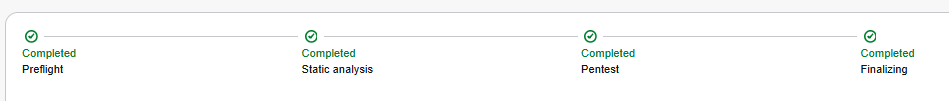 事前チェック -> 静的診断 -> ペンテスト -> 終了 の流れ。