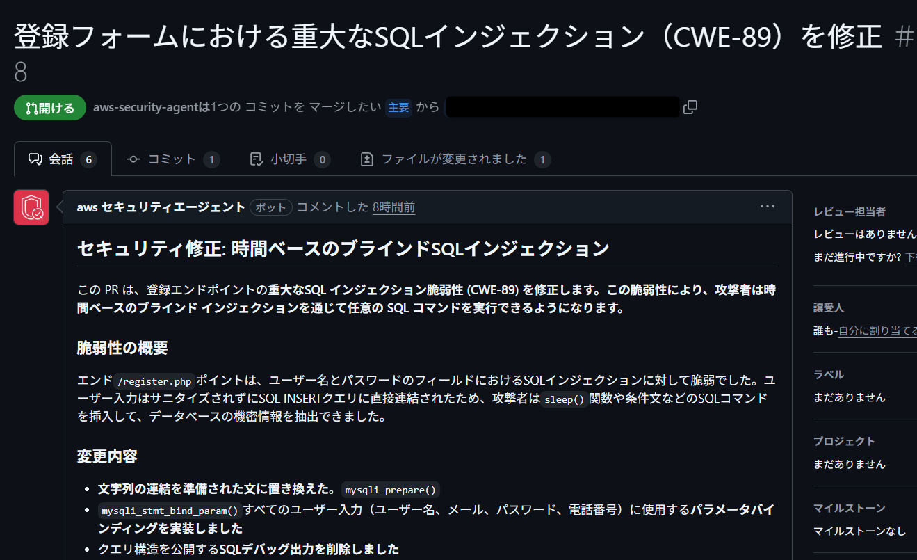 下ペンテスト)も行ってくれ、更に更に脆弱性の修正コードをプルリクエストしてくれる