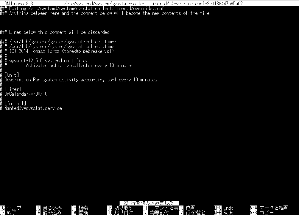 Editing "/etc/systemd/system/sysstat-collect.timer.d/override.conf" canceled: temporary file is empty.