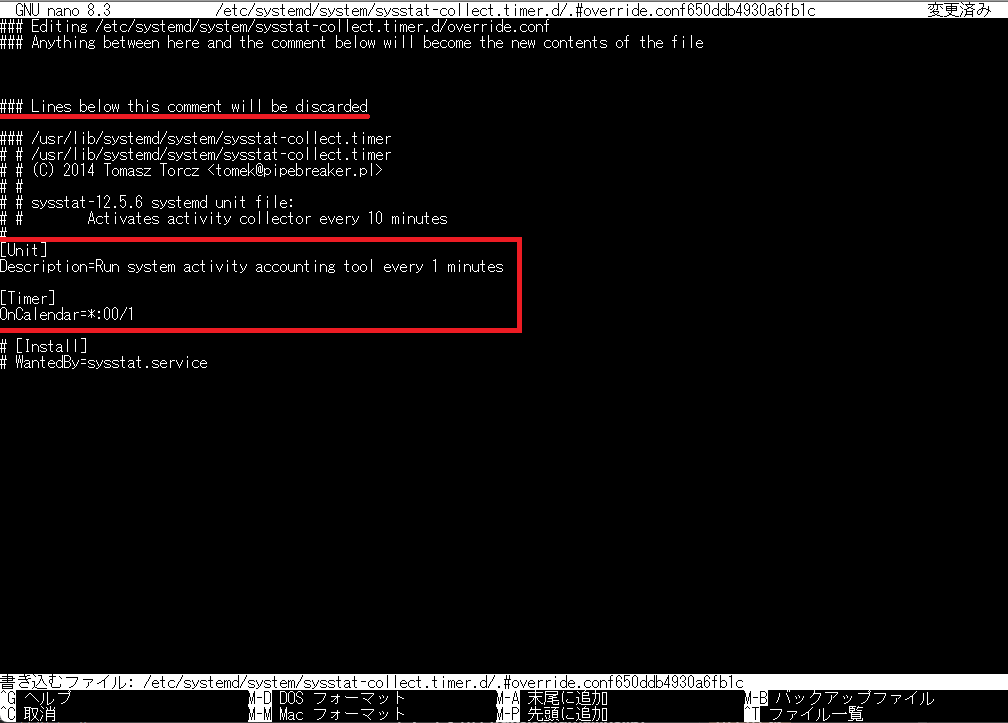 systemctl edit コマンドで表示されるファイルには、以下のようなコメントがあります。